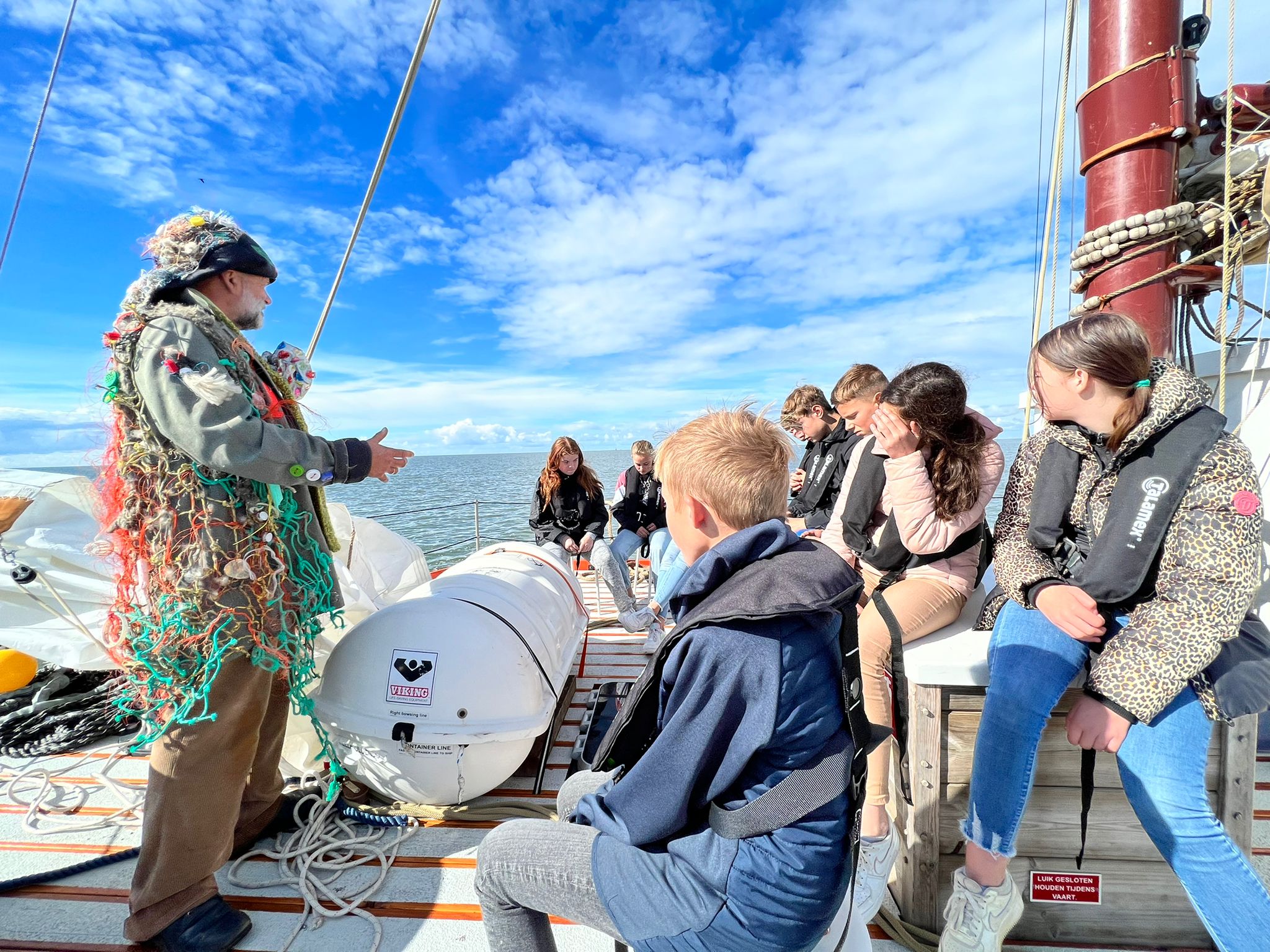 Basisschoolleerlingen krijgen een lespakketboekje met voorinformatie die zij op school in de les kunnen bespreken. Op de expeditie dag verzamelen we in ons Sterke Yerke Doe-, Kijk- en Informatiecentrum in Dok5 aan de Willemshaven in Harlingen. Aan boord ontvangen de kinderen een logboekje met o.a. afbeeldingen van vogels, schelpen, krabben, vissen en zeehonden, zodat ze kunnen onderzoeken wat er om hun heen te zien is, Er zijn verrekijkers aan boord zodat ze de vogels en zeehonden kunnen observeren. Onze verhalenverteller Pier de Plasticjutter neemt ze mee in een spannende Waddenbelevenis en natuurlijk gaan ze plastic jutten naar plastic langs de kustlijn. En heel bijzonder, we werken hierin samen met de Waddenvereniging. Met het gevonden plastic bestaat de mogelijkheid om onder begeleiding van onze jutters kunstwerkjes te maken in onze werkplaats in Dok5.